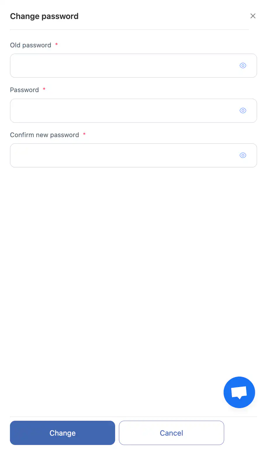 - 一个用于更改密码的侧面板将打开。