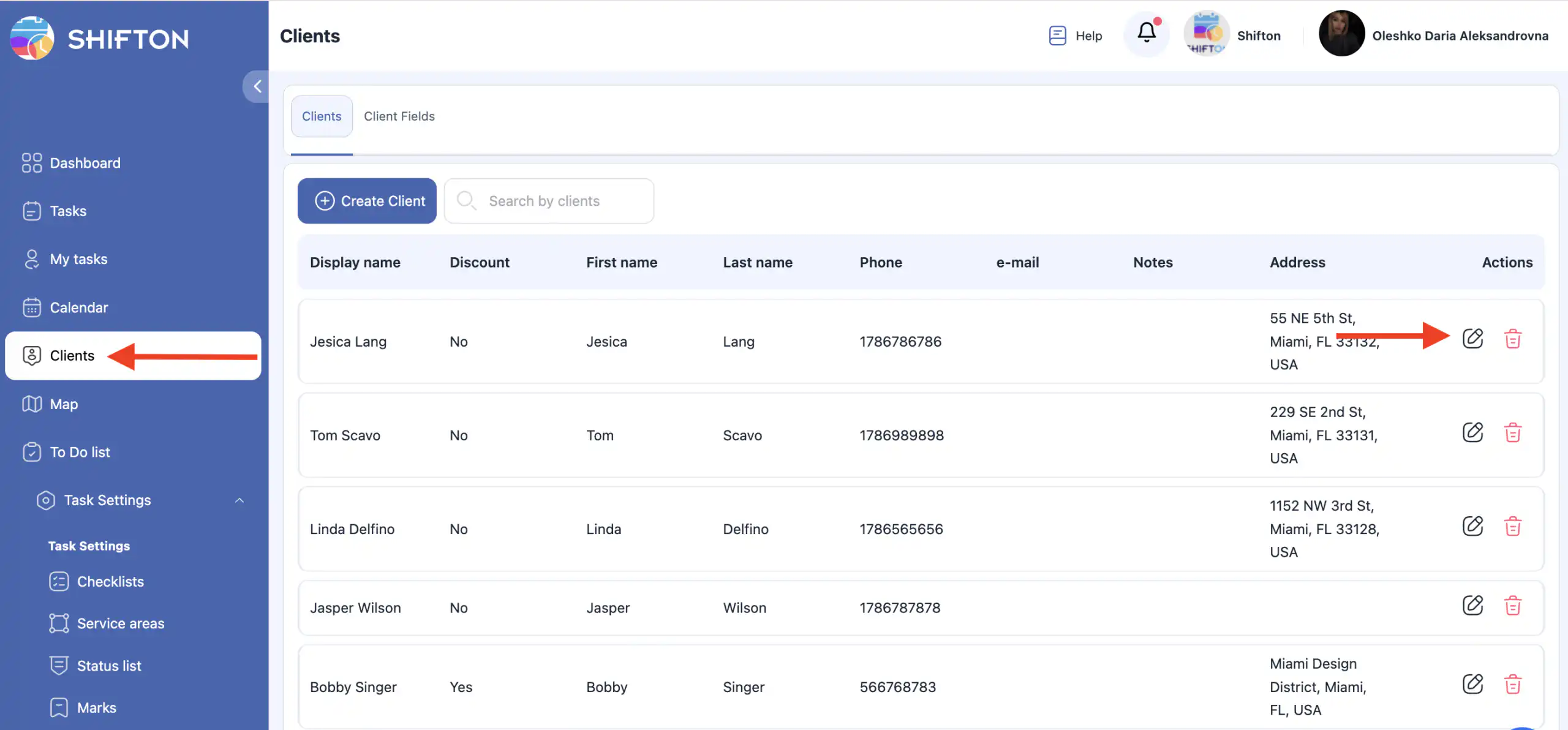 要编辑客户详细信息,点击铅笔图标→ 修改 → 保存.