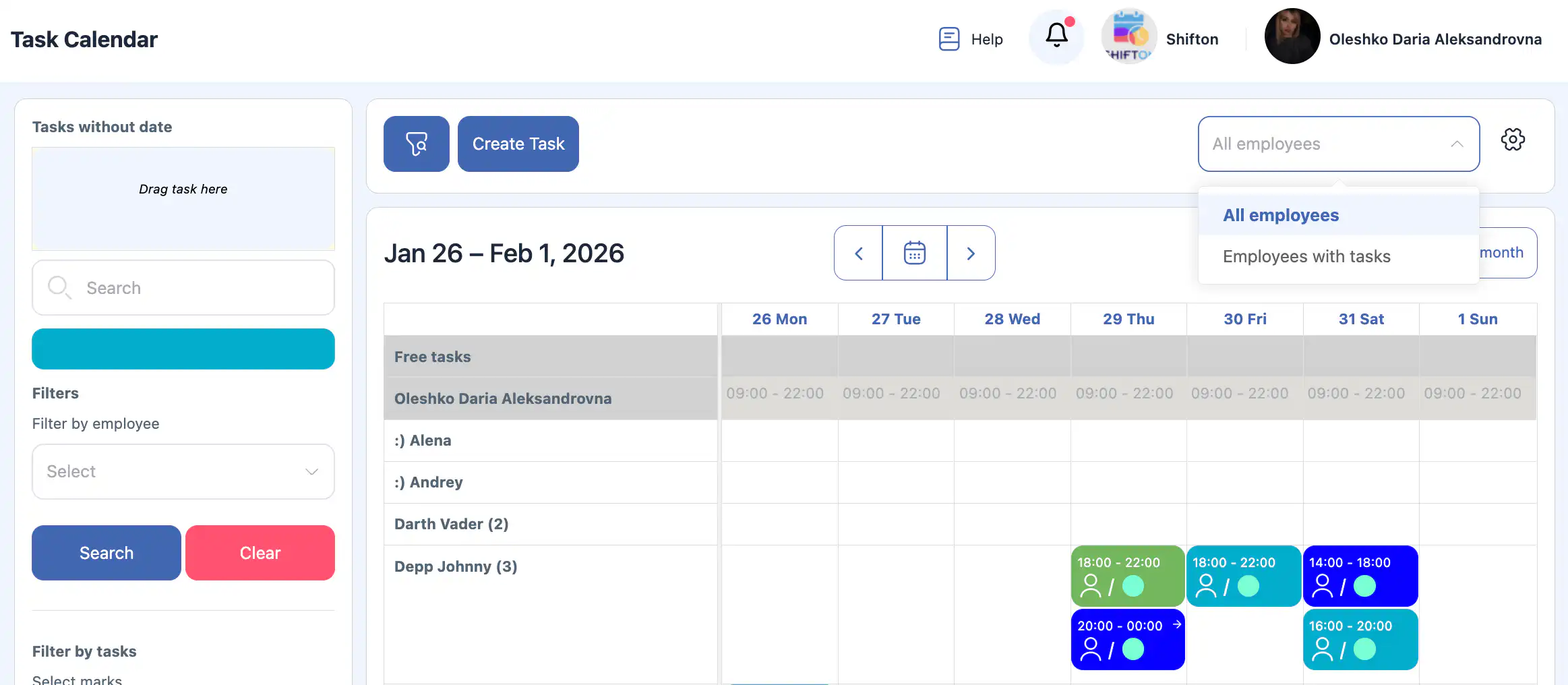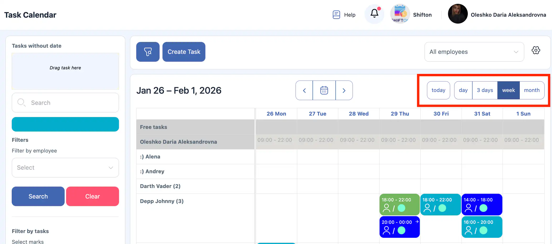 12. 我可以在日历上查看所有员工的任务吗?