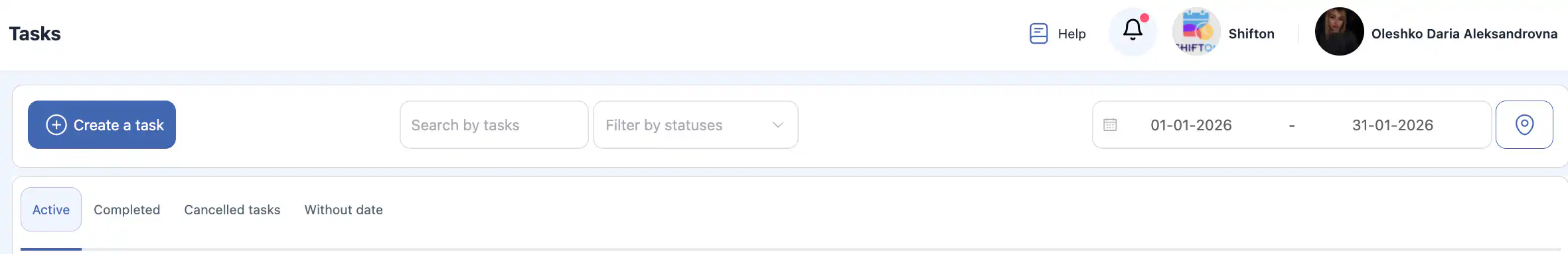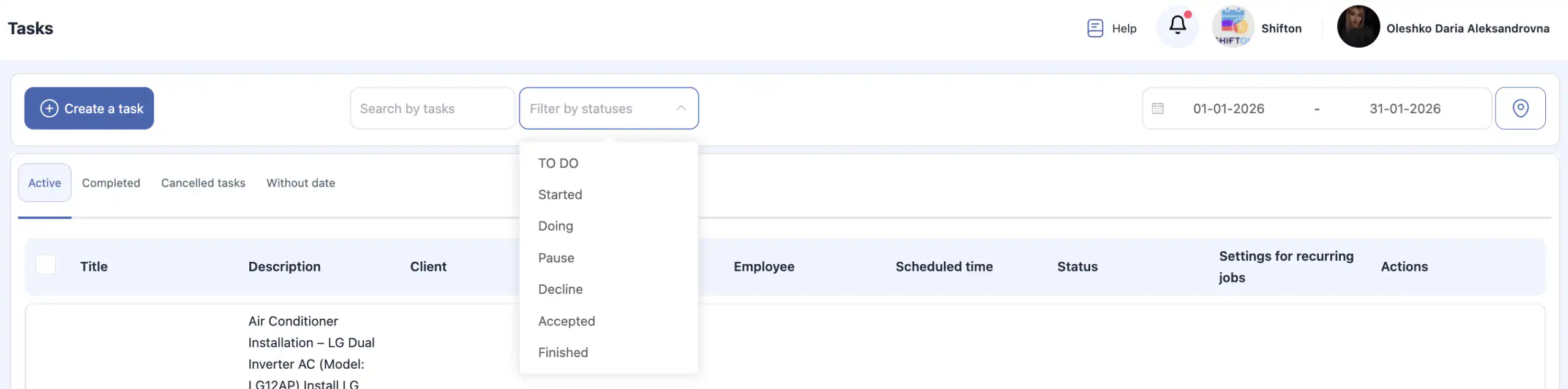 按状态筛选任务:活动的、已完成的、已取消的和无日期的.
