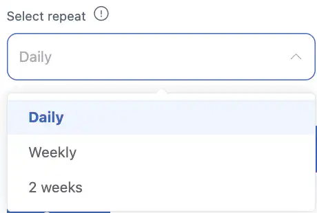 – 每周同一天直到结束日期。每两周