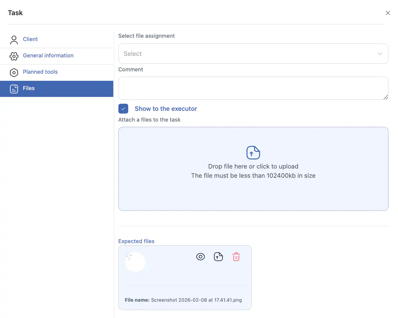 上传文件 → 选择是否向员工显示/隐藏它们。