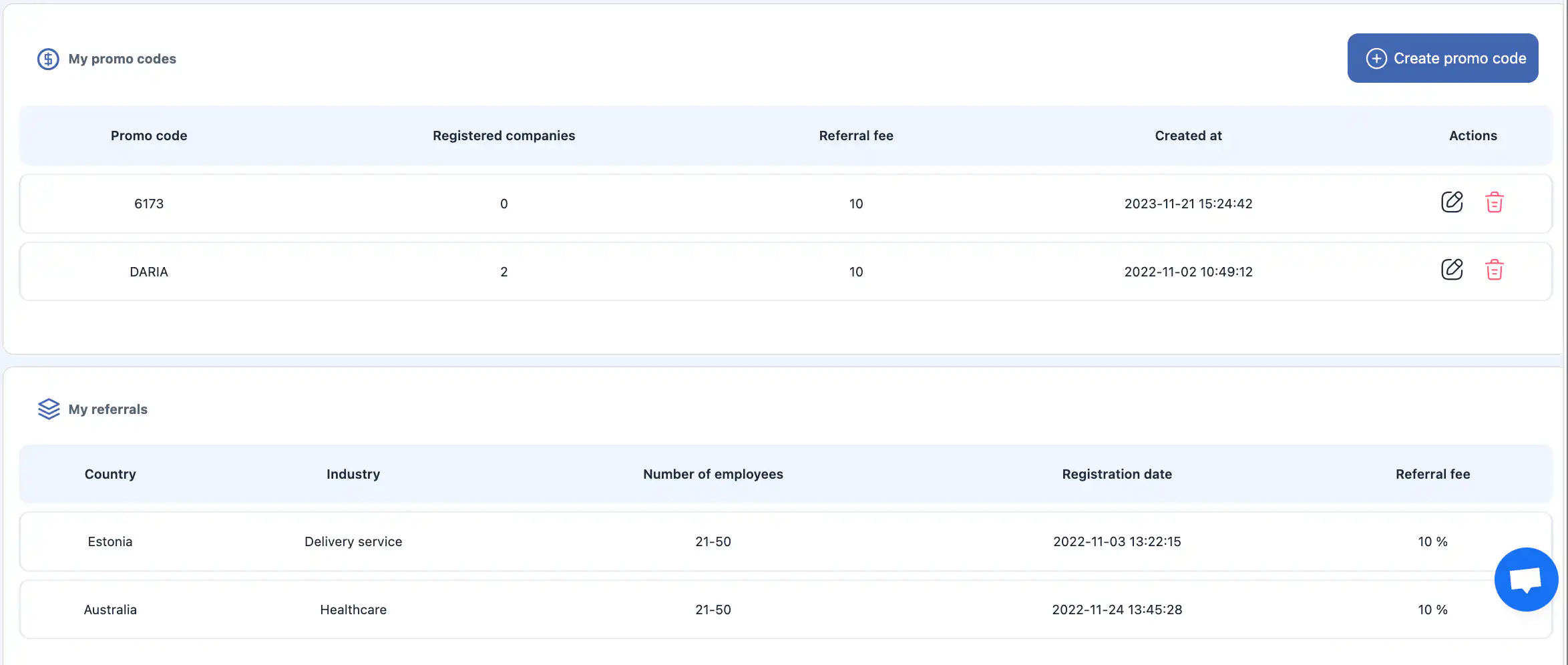 您在您的 Shifton 账户中创建一个个人促销代码。