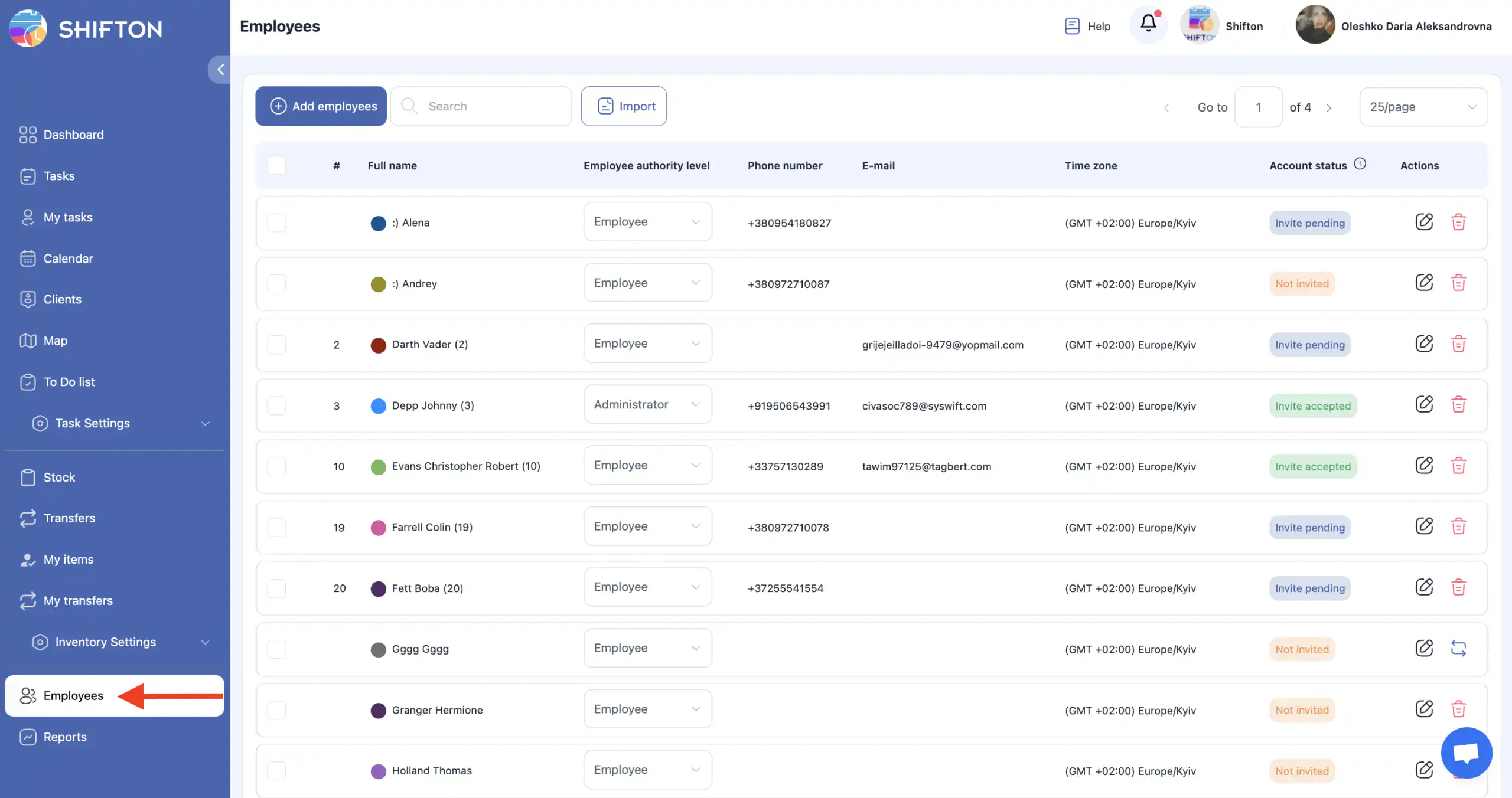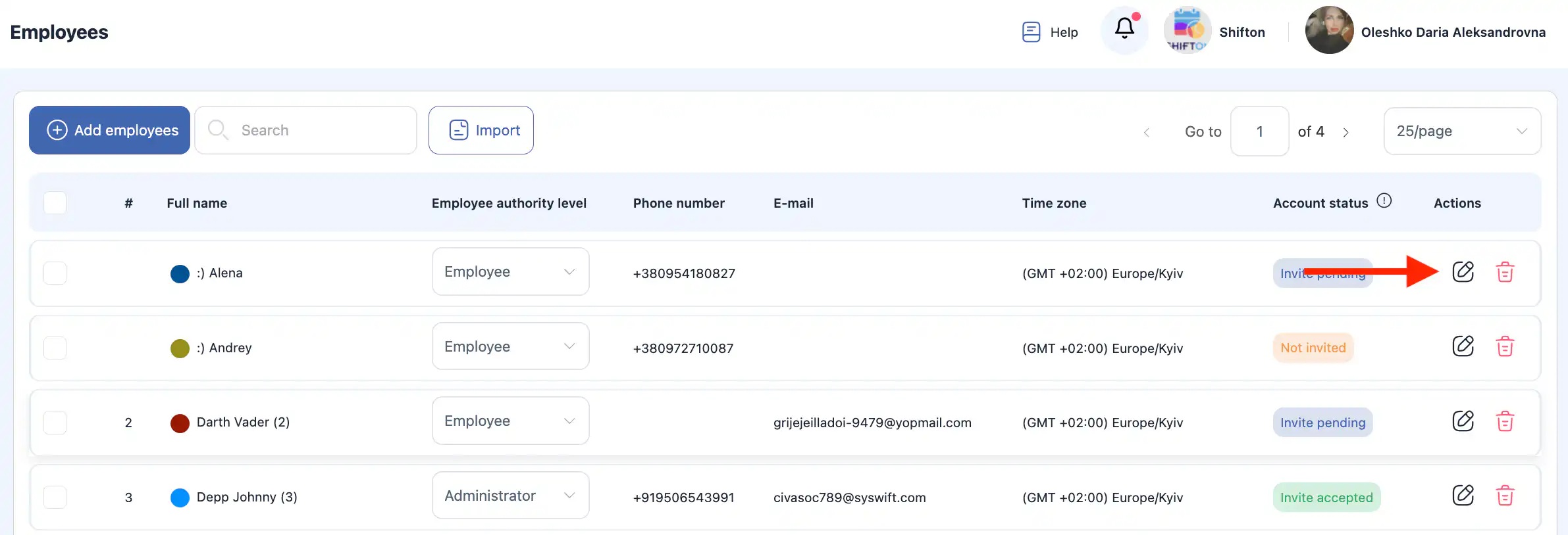 2. 点击 铅笔图标,员工旁边的。