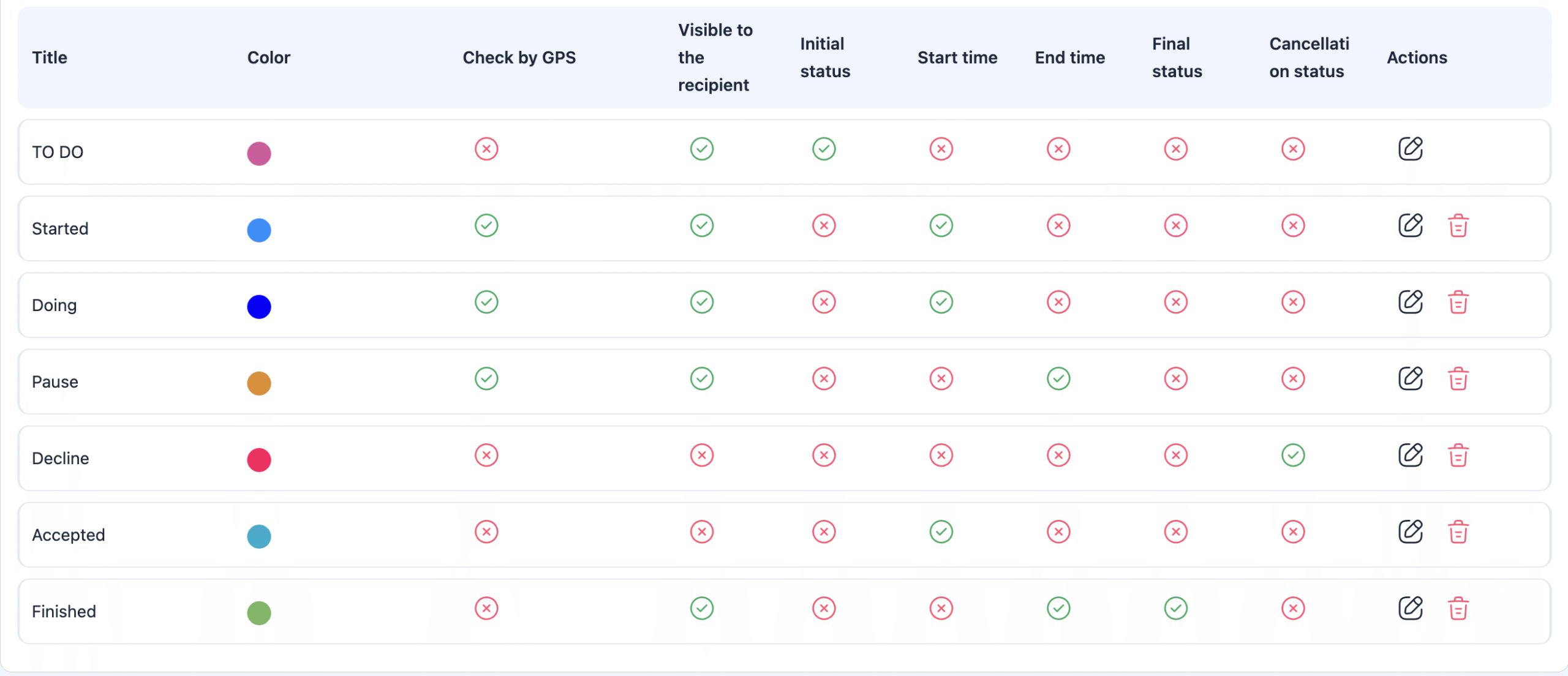Shifton 包括一个默认状态工作流,为大多数公司所使用,同时您也可以配置一个更详细的状态流程,以满足您的运营需求。